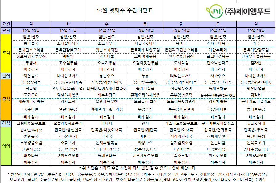 신월실버요양원 주간식단표(25.10.20~25.10.26)