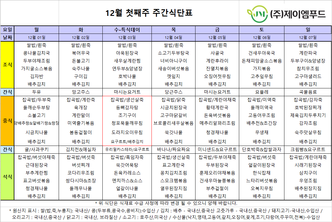 신월실버요양원 주간식단표(25.12.01~25.12.07)